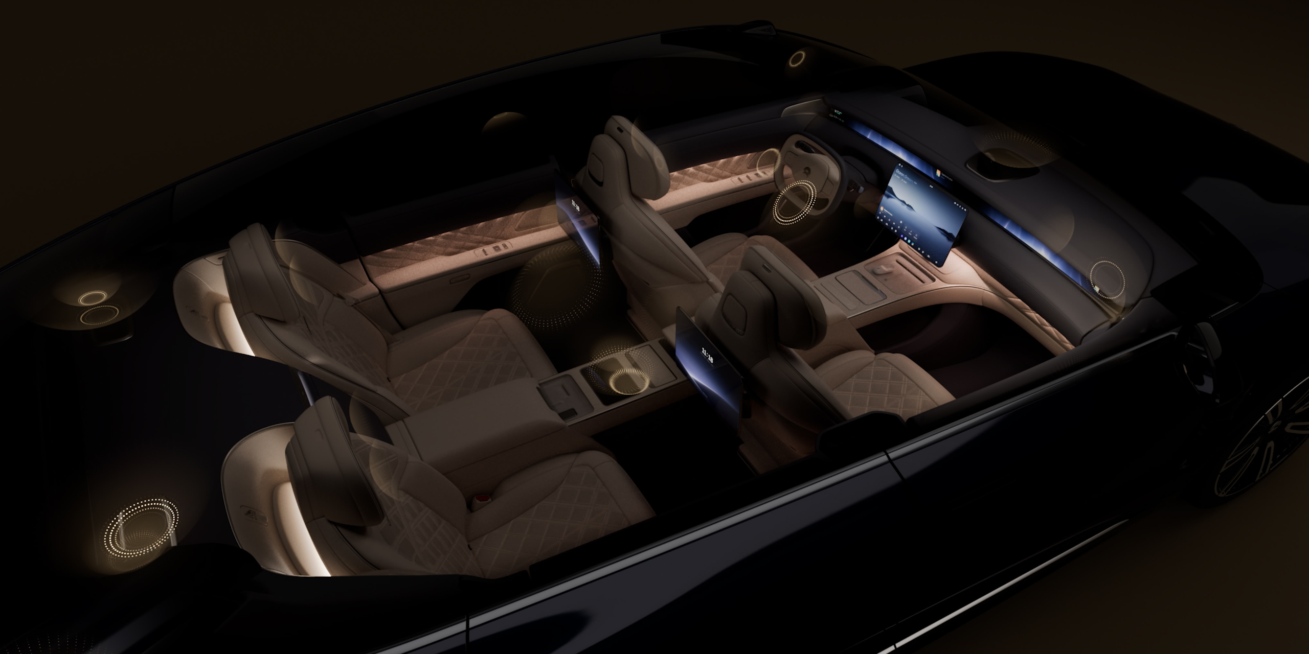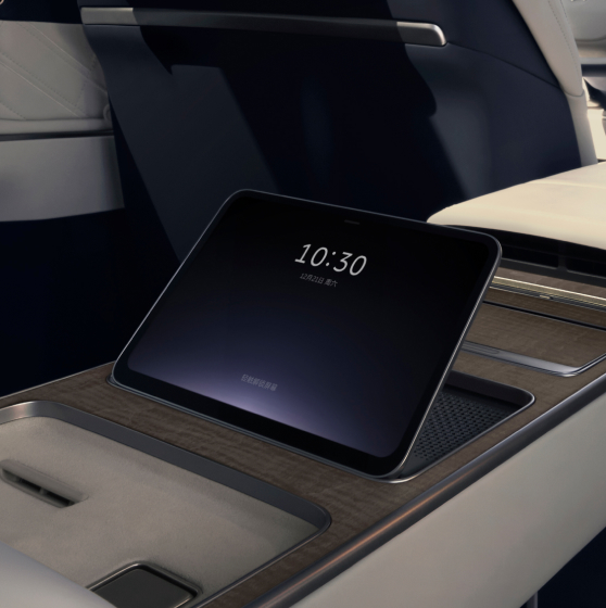 Based on the front-projecting headlights, an ambient light curtain gradually unfurls while a large 2 square meter light carpet from a fan-shaped door panel floor lamp, completes the journey, providing an elegant welcome each step of the way.
